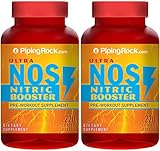 Piping Rock Ultra NOS Nitric Booster 1200 mg 2 Bottles x 220 Coated Caplets Pre-Workoout Supplement